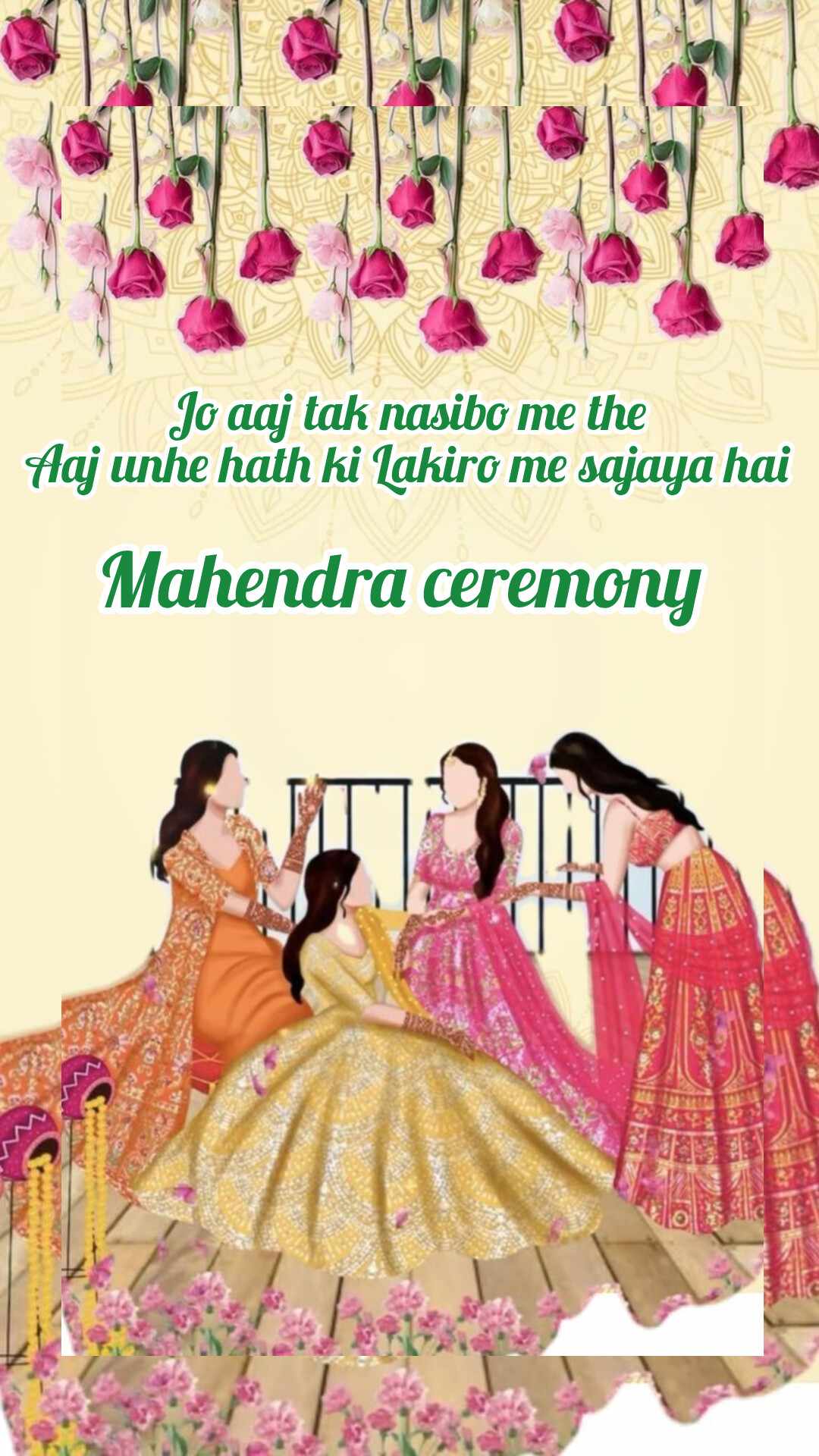 At both places, The sun slowly sank behind the haveli walls, and the evening air buzzed with excitement. Music and laughter filled every corner as the mehndi function came alive with colors, lanterns, and the fragrance of fresh flowers.