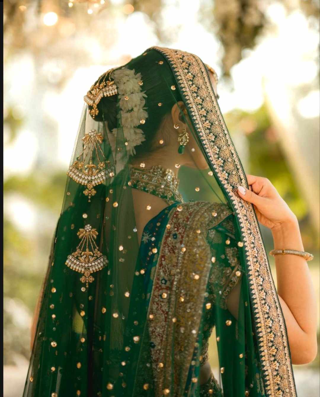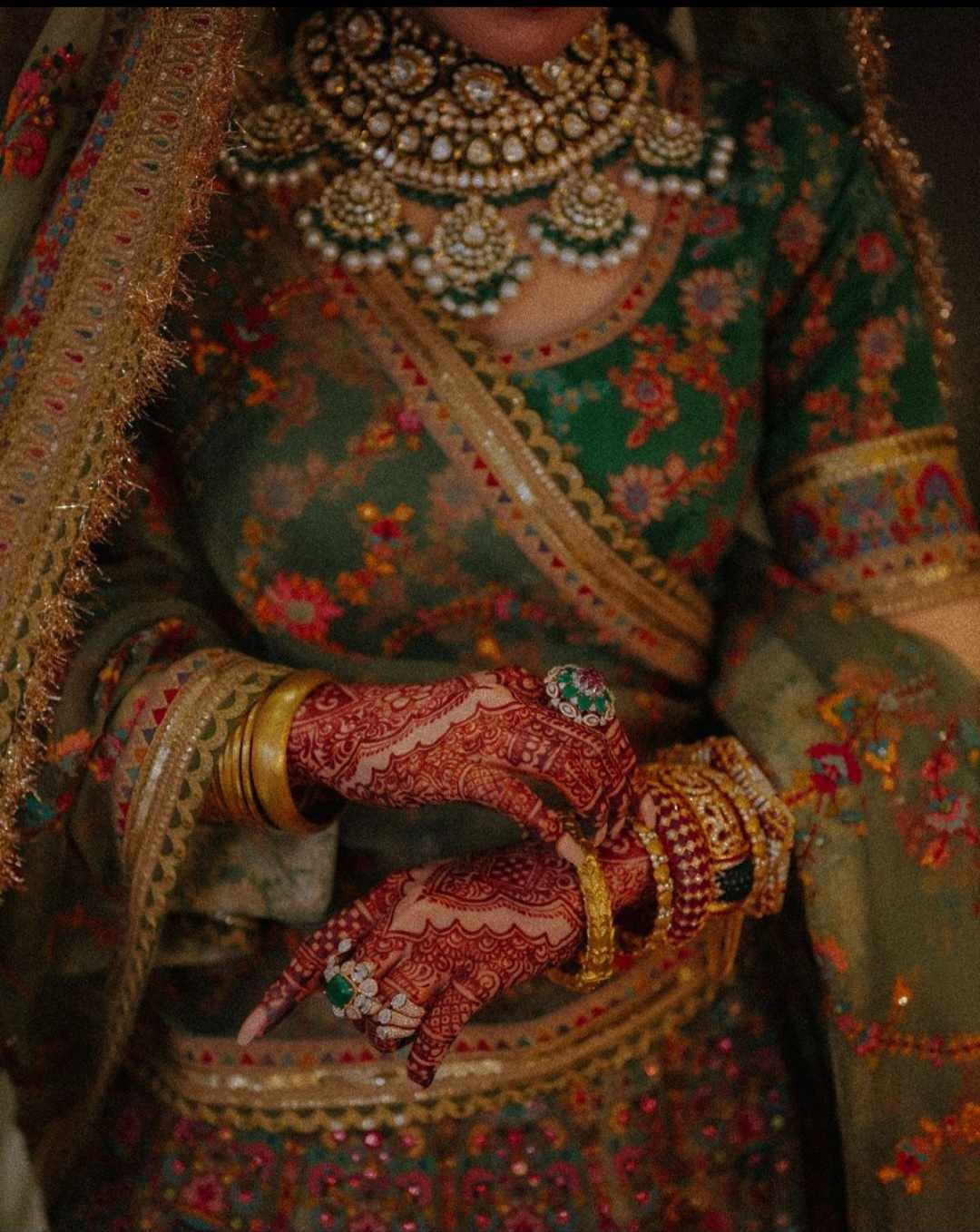 She was coming completely ready, dressed in a green lehenga adorned with matching jewelry.